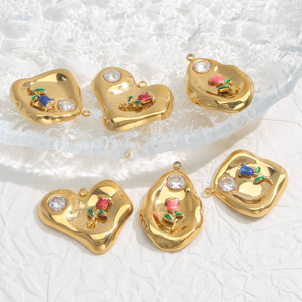 ステンレス鋼ゴールデンローズダイヤモンドペンダントジュエリー不規則な形状絶妙な手作り DIY ジュエリーアクセサリー