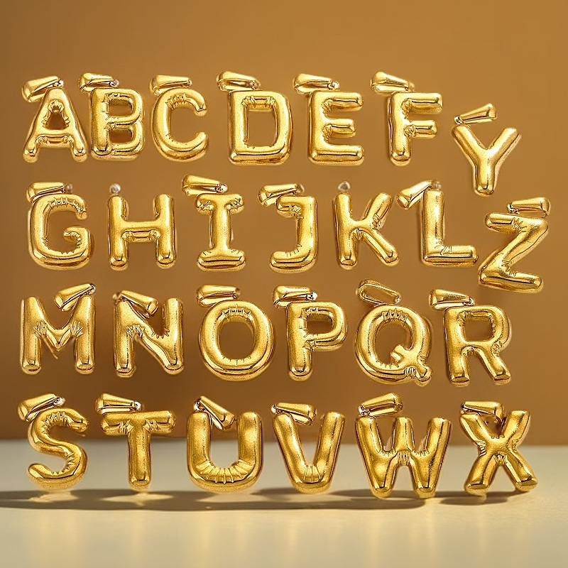 ヨーロッパとアメリカのクロスボーダーステンレス鋼メッキリアルゴールドバルーン光沢のある 26 英字ペンダントトレンディなネックレスセーターチェーン女性のための