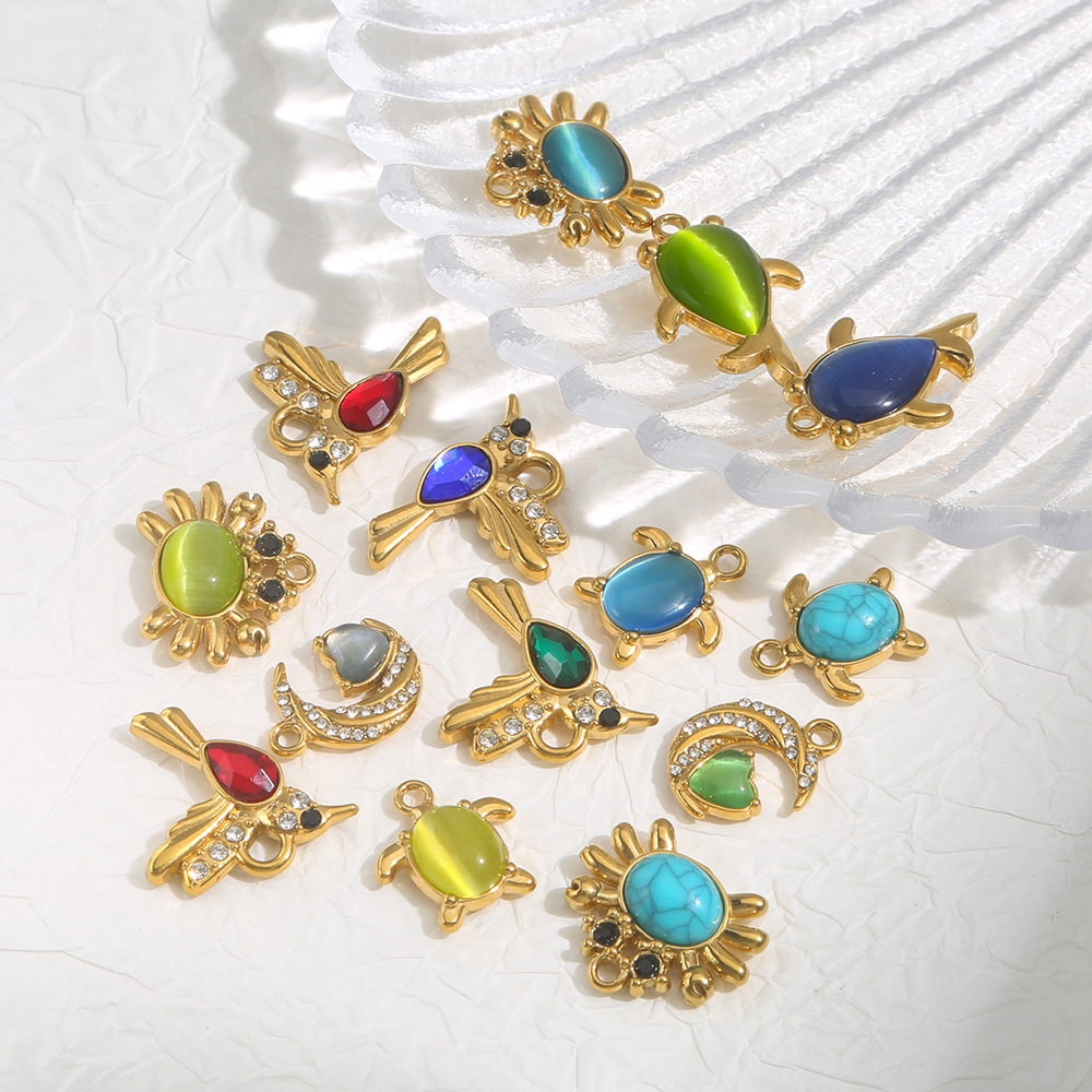 キャッツアイ鳥金魚動物の形のステンレス鋼ペンダント手作り DIY ブレスレットネックレスハイエンドジュエリーアクセサリー