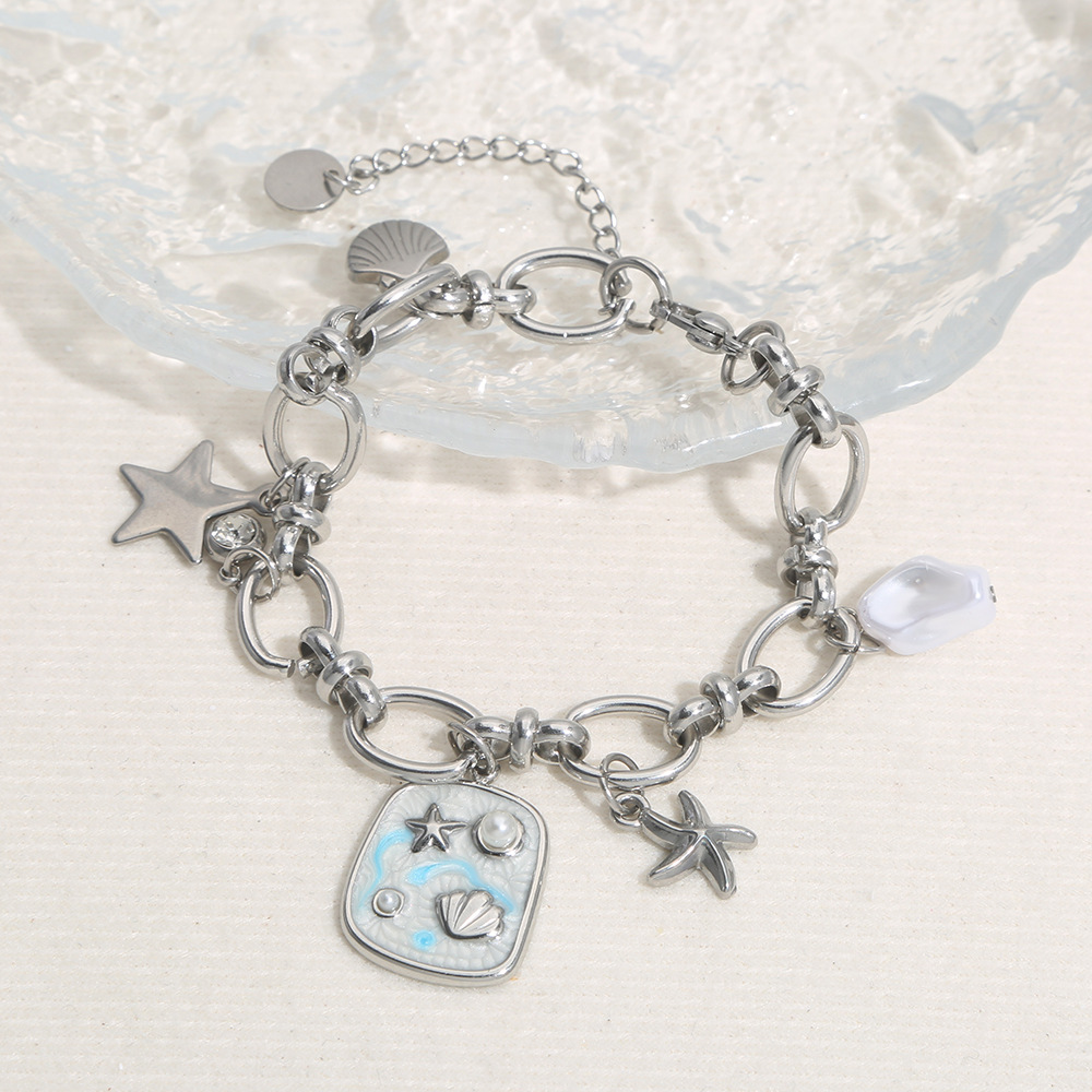 ステンレス鋼の海洋要素ブレスレット貝殻ヒトデ真珠ペンダントブレスレットレトロ文学ファッションブレスレット