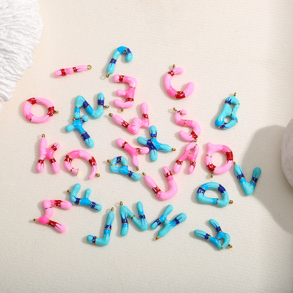 ステンレス鋼のカラフルなオイルドリップ Q バージョンかわいい DIY グラデーション 26 英字ペンダントネックレスジュエリーアクセサリー