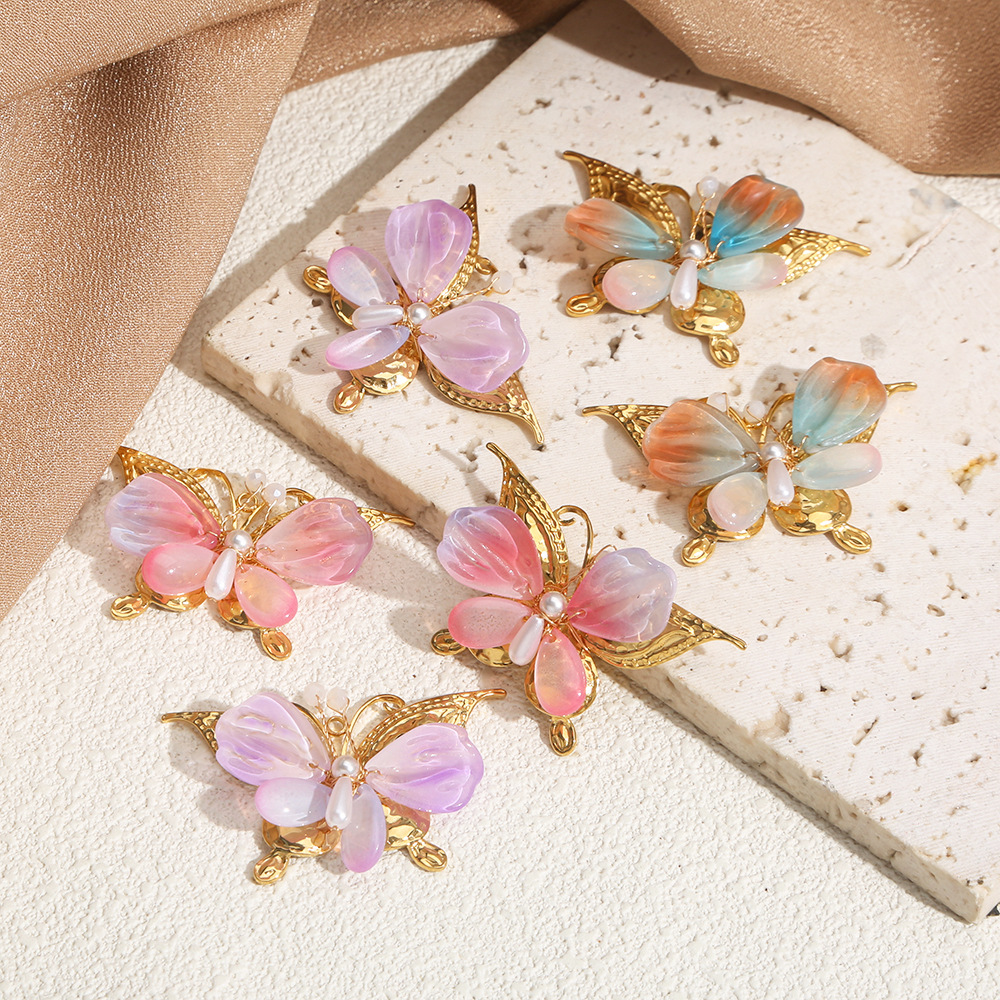 ステンレス鋼スーパー妖精蝶真珠ガール妖精ペンダントペンダント DIY ジュエリーアクセサリー手作り甘いペンダント