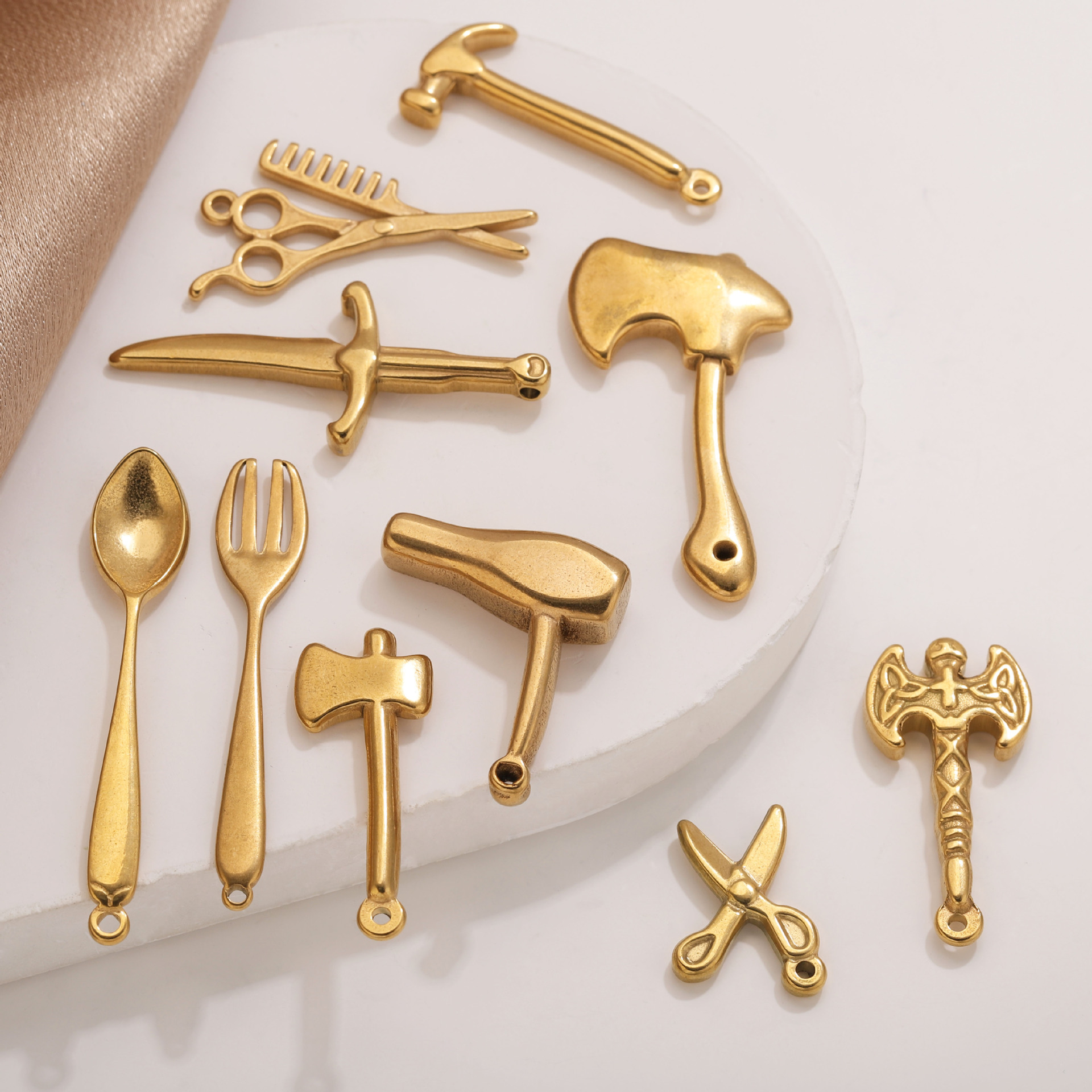 3個/バッグステンレス工具ペンダントドライヤーはさみ包丁スプーンアクセサリーペンダントdiyネックレスイヤリング飾り