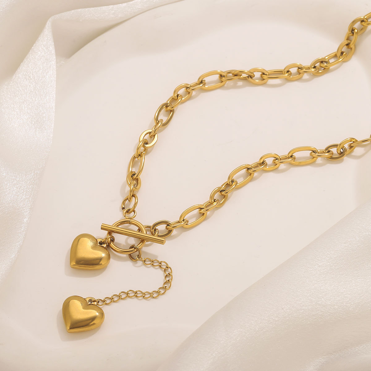 パーソナライズされたファッションゴールデン二層ラブペンダントステンレス鋼ネックレス OT バックルデザイン多用途ネックレスジュエリー