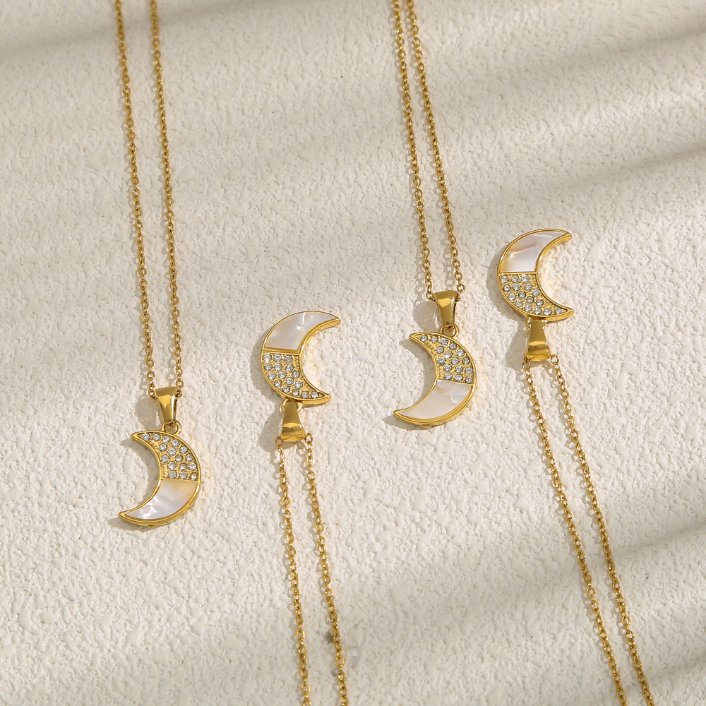 ステンレス鋼マイクロ象嵌ジルコンムーンペンダントネックレスハイエンドファッション多用途パーソナライズネックレスネックレス鎖骨チェーン