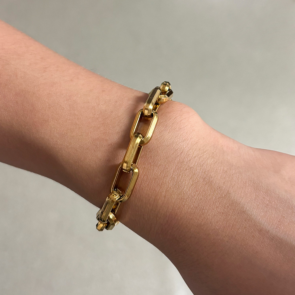 ヨーロッパとアメリカンスタイルのシンプルなパーソナライズされたステンレス鋼の台形チェーンブレスレットファッショナブルなゴールデンゴールドOTバックルブレスレットジュエリー卸売