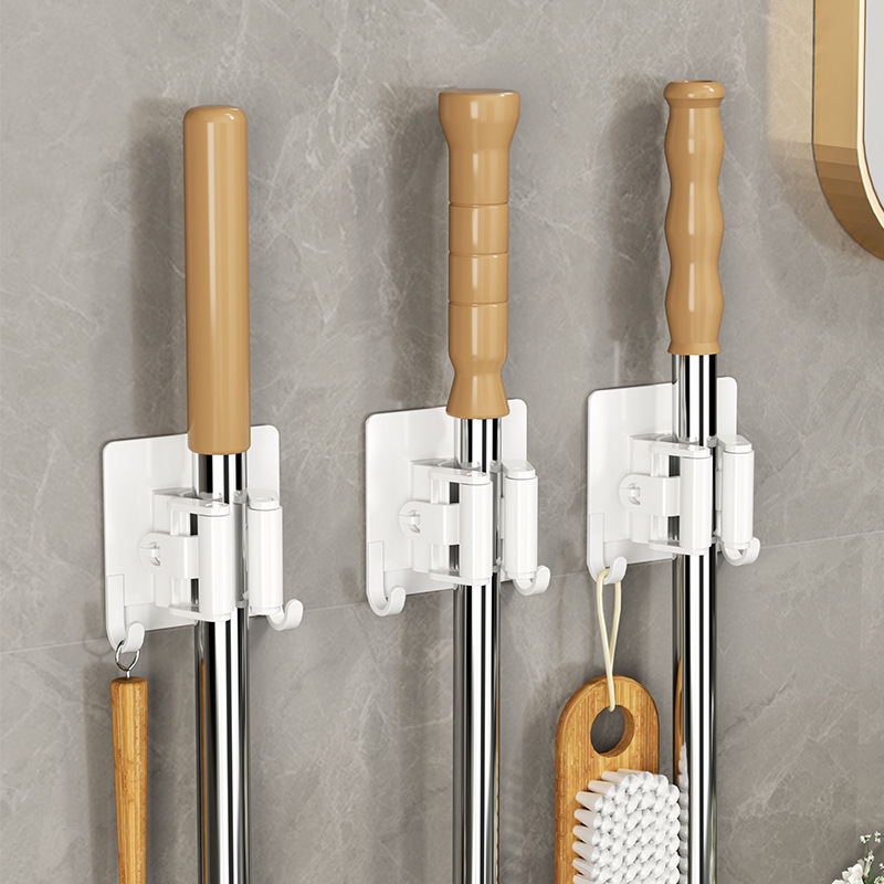 簡単なモップフック穴なし神器トイレ壁掛けモップ収納棚強力粘着性クリップ