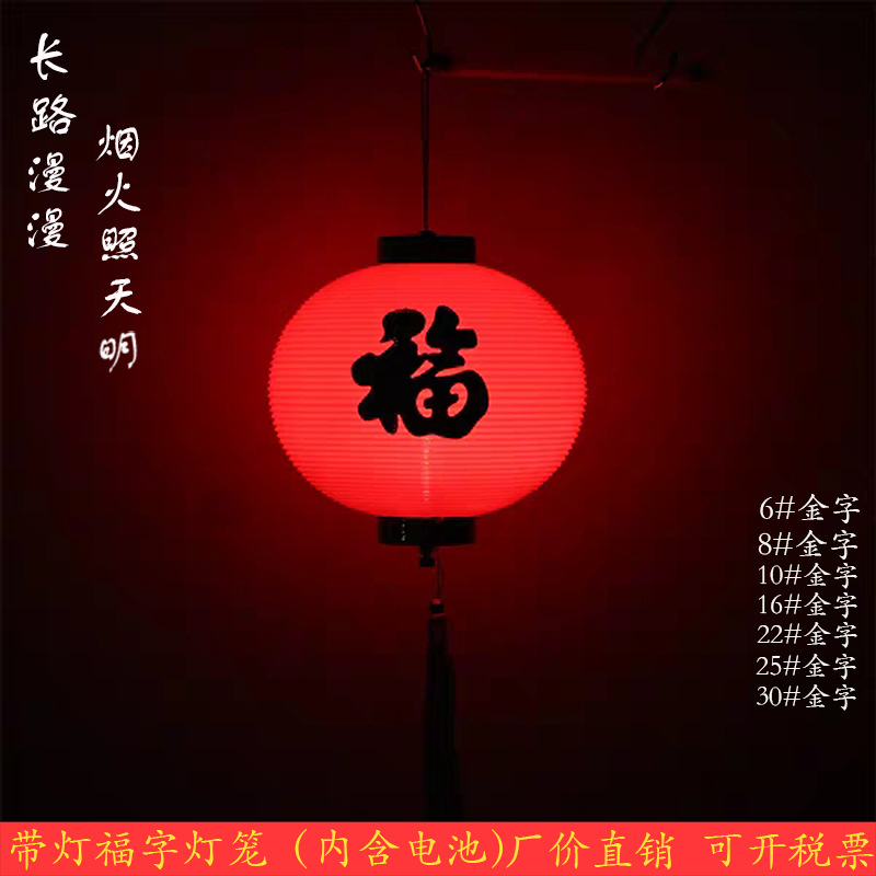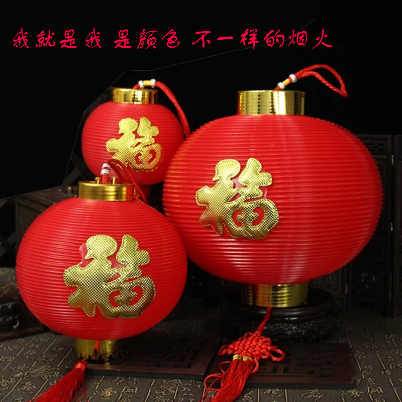 ランプ付き福字提灯中国式冬瓜円pvcプラスチック屋外防水灯ダンス道具装飾提灯