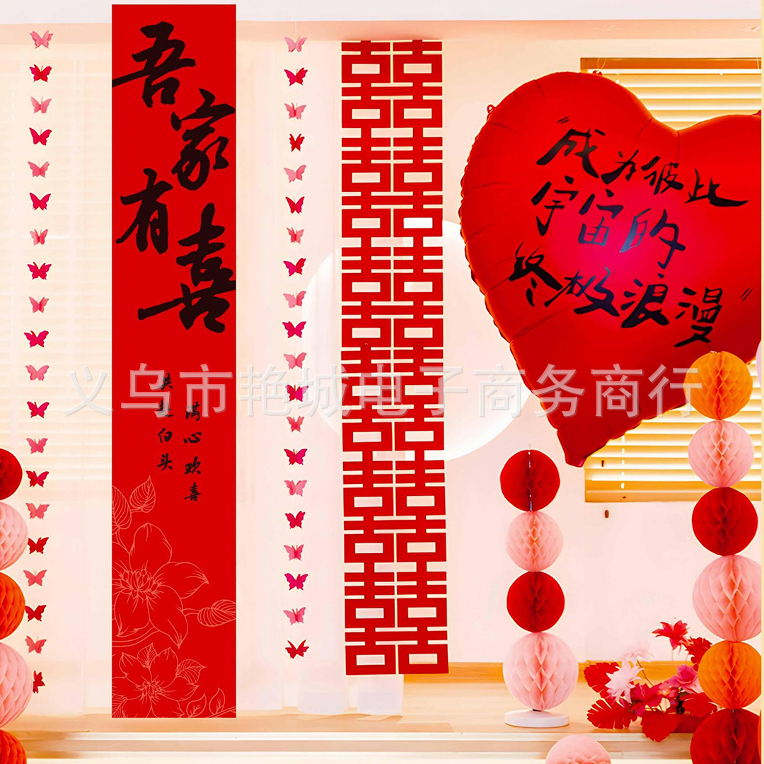 ロマンチックな結婚部屋の装飾風船喜字風船提灯のバナー結婚用品寝室の結婚祝いの新しい部屋のシーンの配置