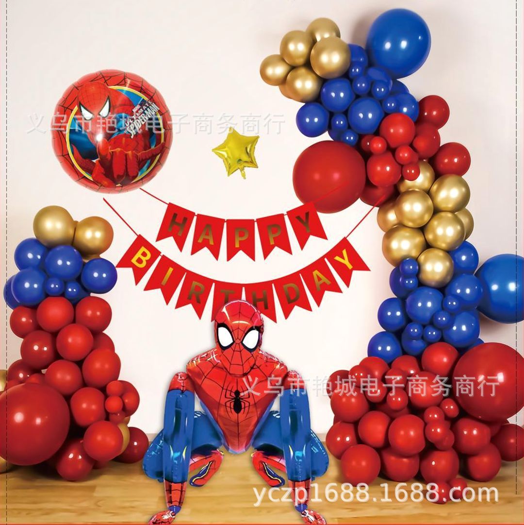 誕生日の配置は男の子の子供の歳のアルミニウムの膜の風船のネットの赤い背景の壁の漫画の連盟の英雄のスパイダーマンを飾ります。