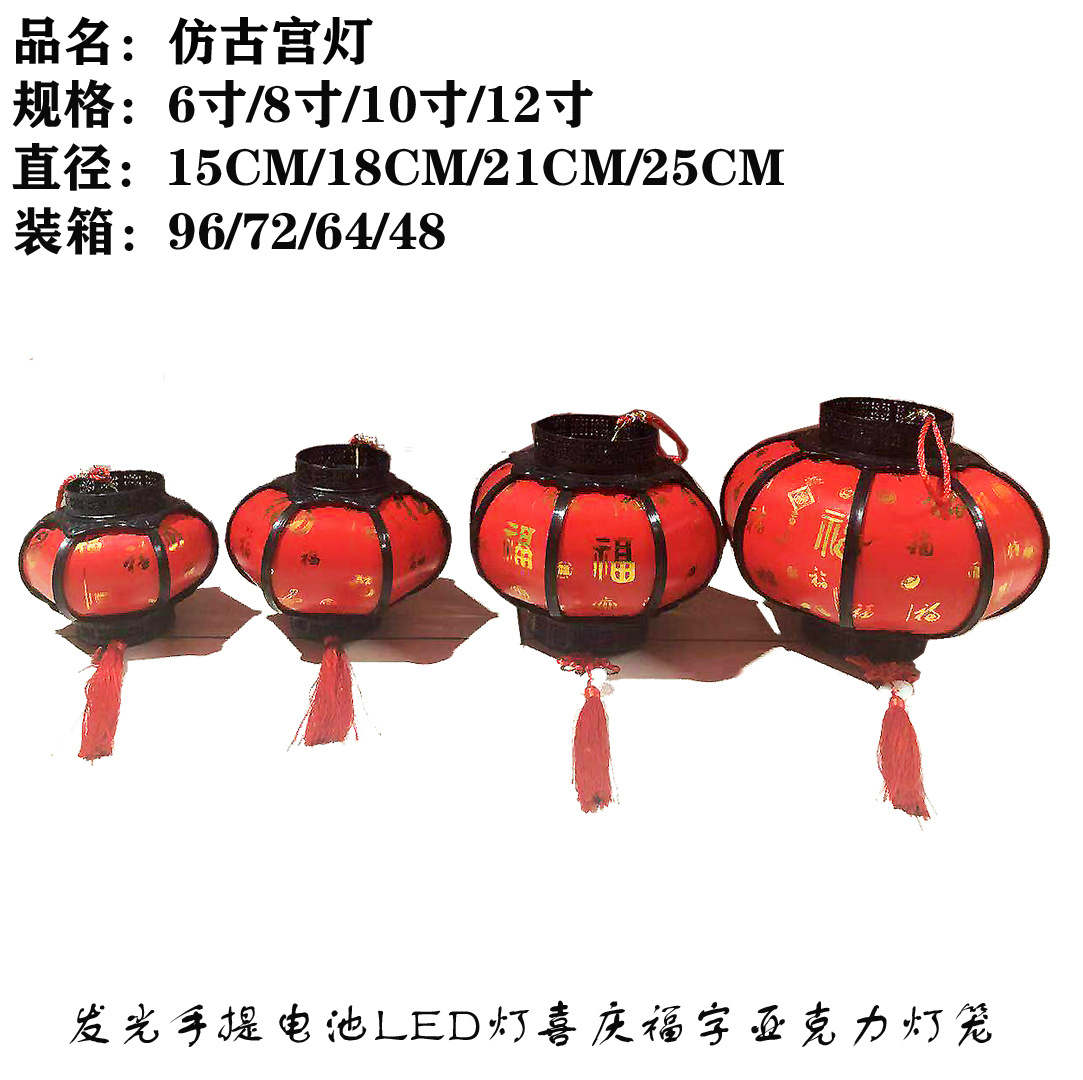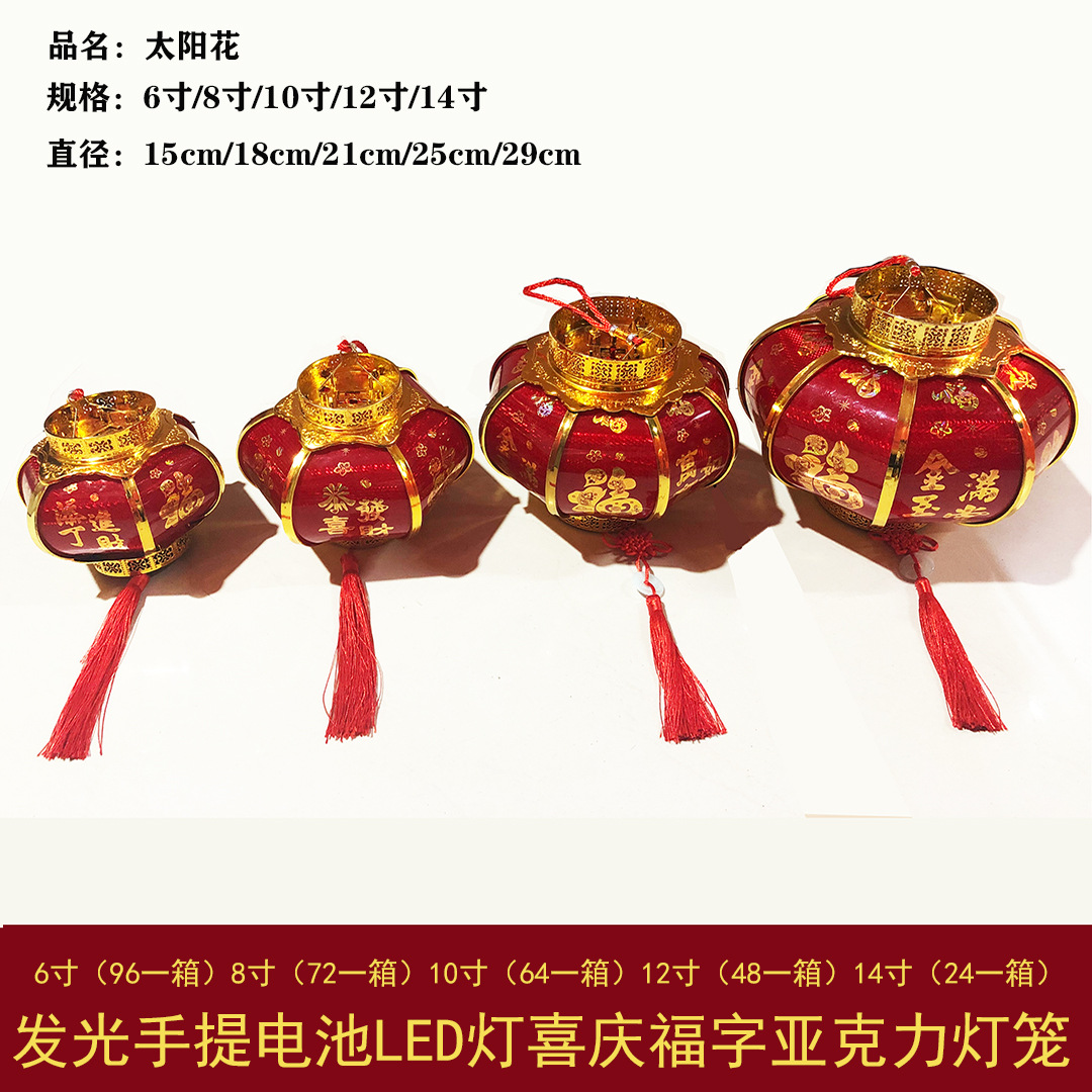 メーカー卸売り新年飾り赤提灯飾り発光携帯電池ledお祝い福字アクリル提灯