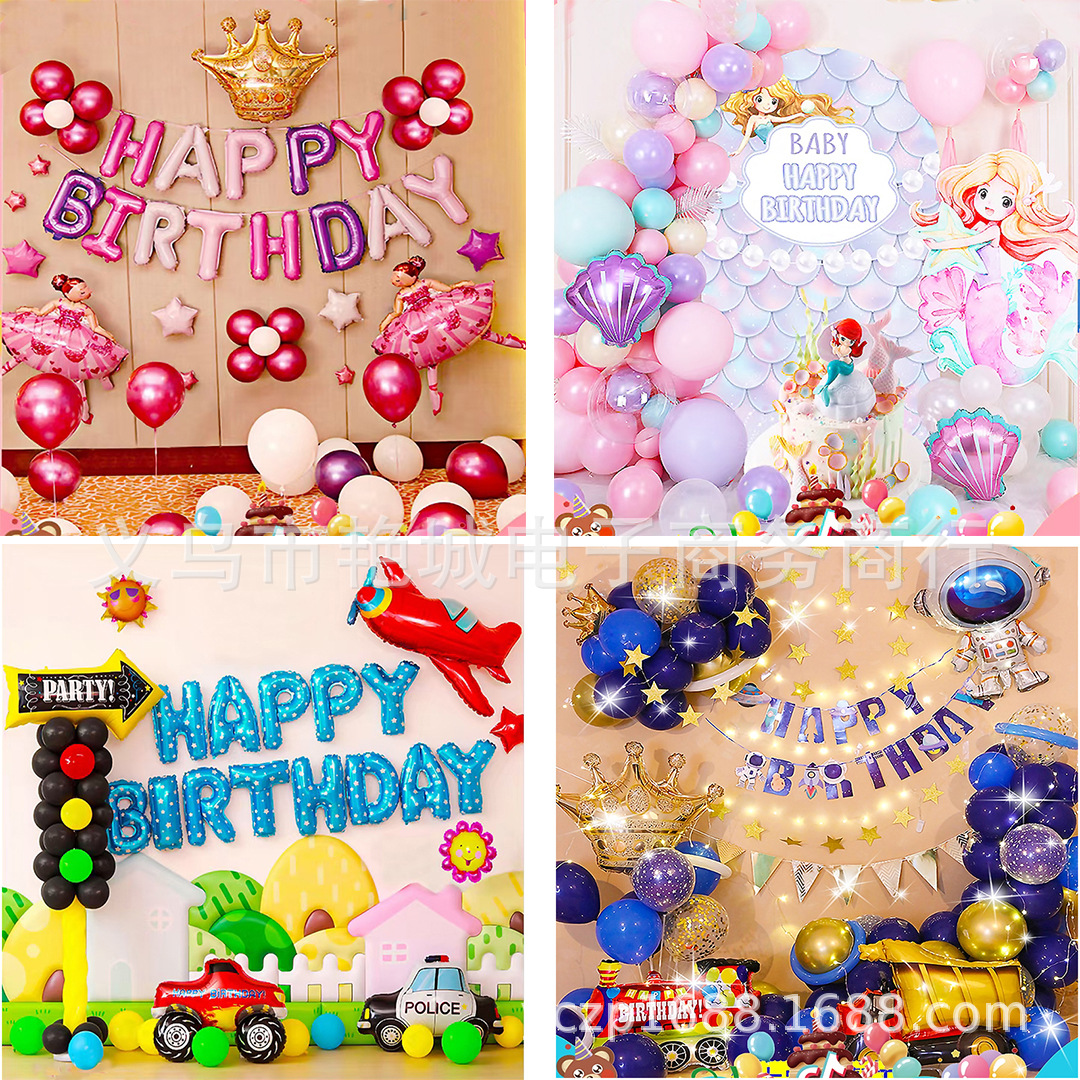 新しいクロスボーダー漫画ハッピーバースデーパーティーアルミホイルバルーンセット大人と子供の誕生日背景装飾用品