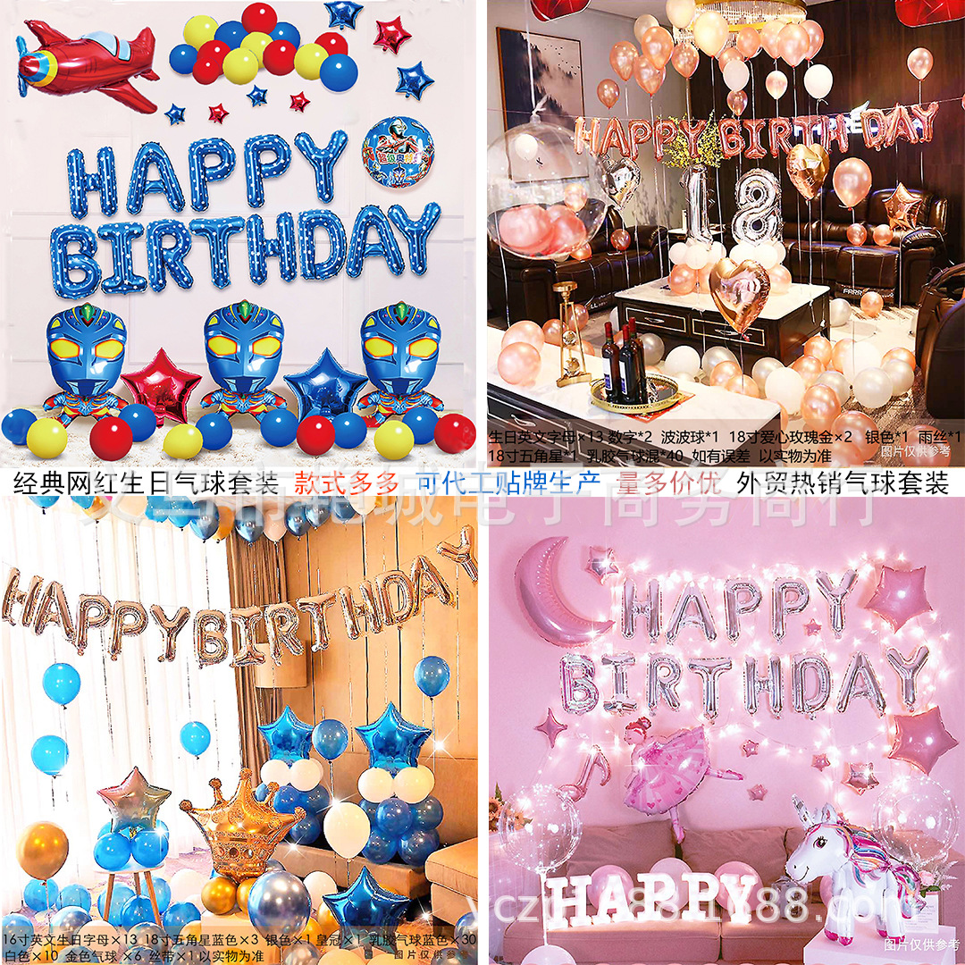 Amazon热い贩売happy birthdayアルミフィルムラテックスバルーンセット诞生日パーティーシーン装饰用品