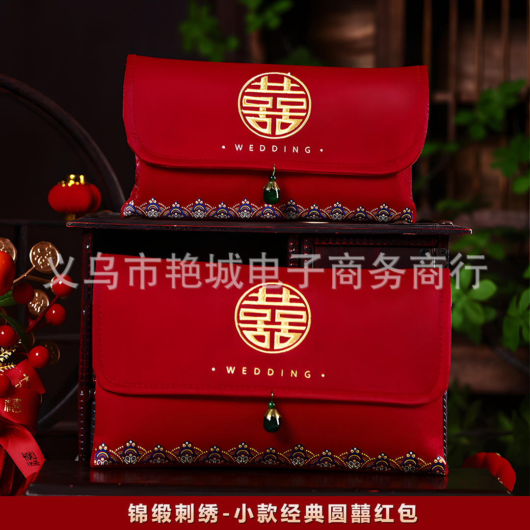 結婚紅包2023の新型大型万元の改口費利は封福字高級刺繍布芸のおめでたい紅包である