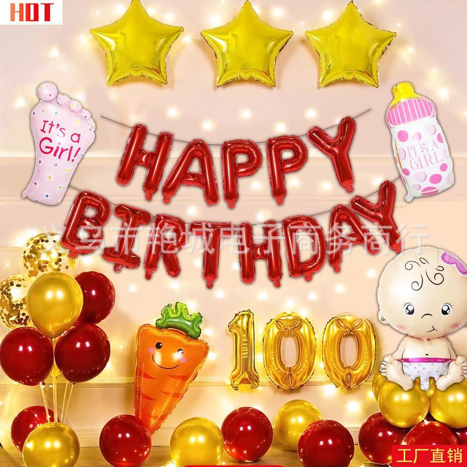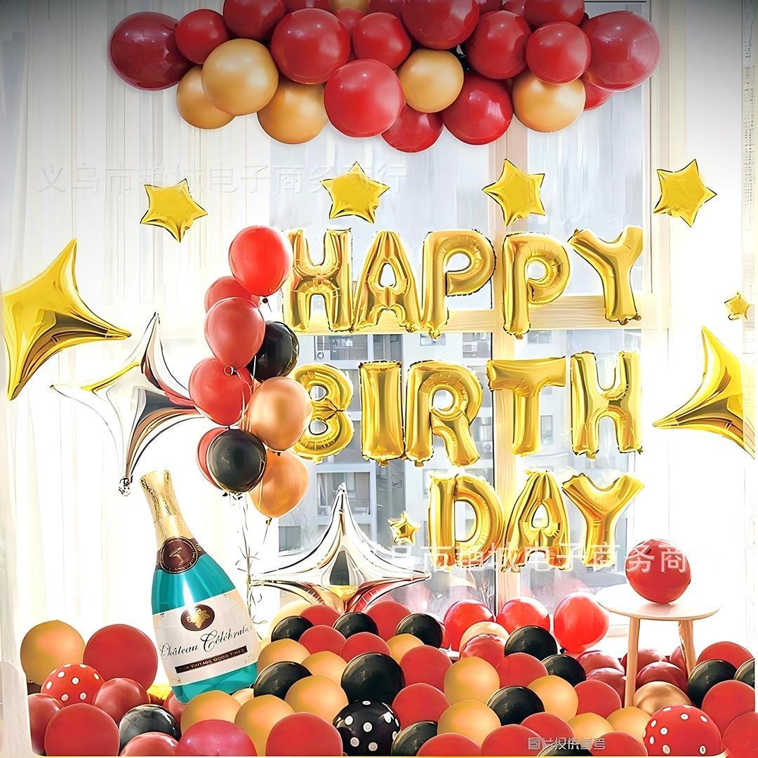 新しい誕生日風船セット子供の誕生日装飾セット大人の誕生日パーティーネット赤背景壁