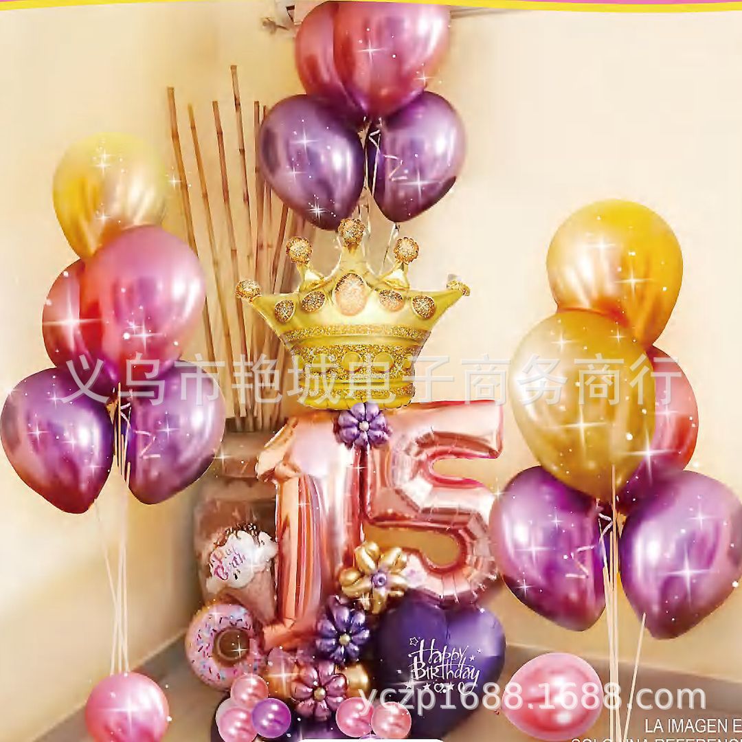 ネット赤西洋語15歳成人礼パーティーアルミ膜風船セット装飾シーン配置男女友人成人礼