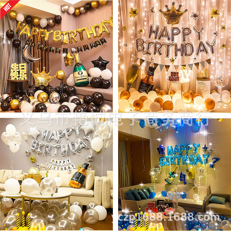 ネット赤誕生日風船テーマセットライト付き男の子女の子誕生日パーティーシーン背景壁用品