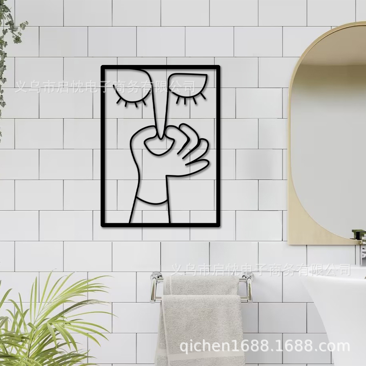 モダンなシンプルな面白いラインアートのバスルームの規則的なロゴの金属の壁の装飾のトイレのバスルームの装飾