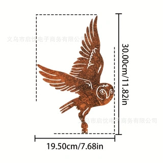国境を越えた鉄芸レトロな花園シルエット錆びた金属フクロウ彫刻屋外フェンス装飾園芸工芸品