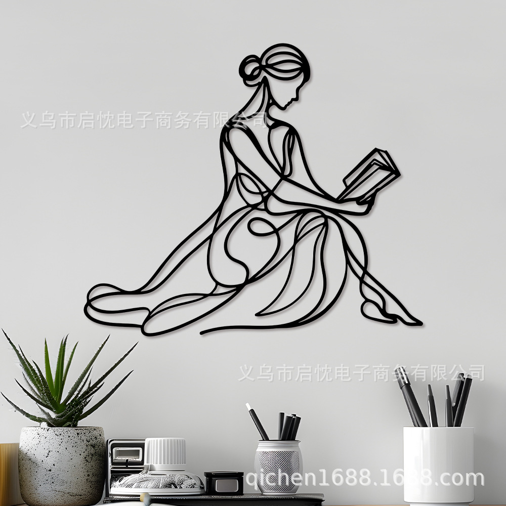 クロスボーダー起爆ブラックウォールデコレーションエレガント女性読书クリエイティブインテリアメタルアイアンシルエット