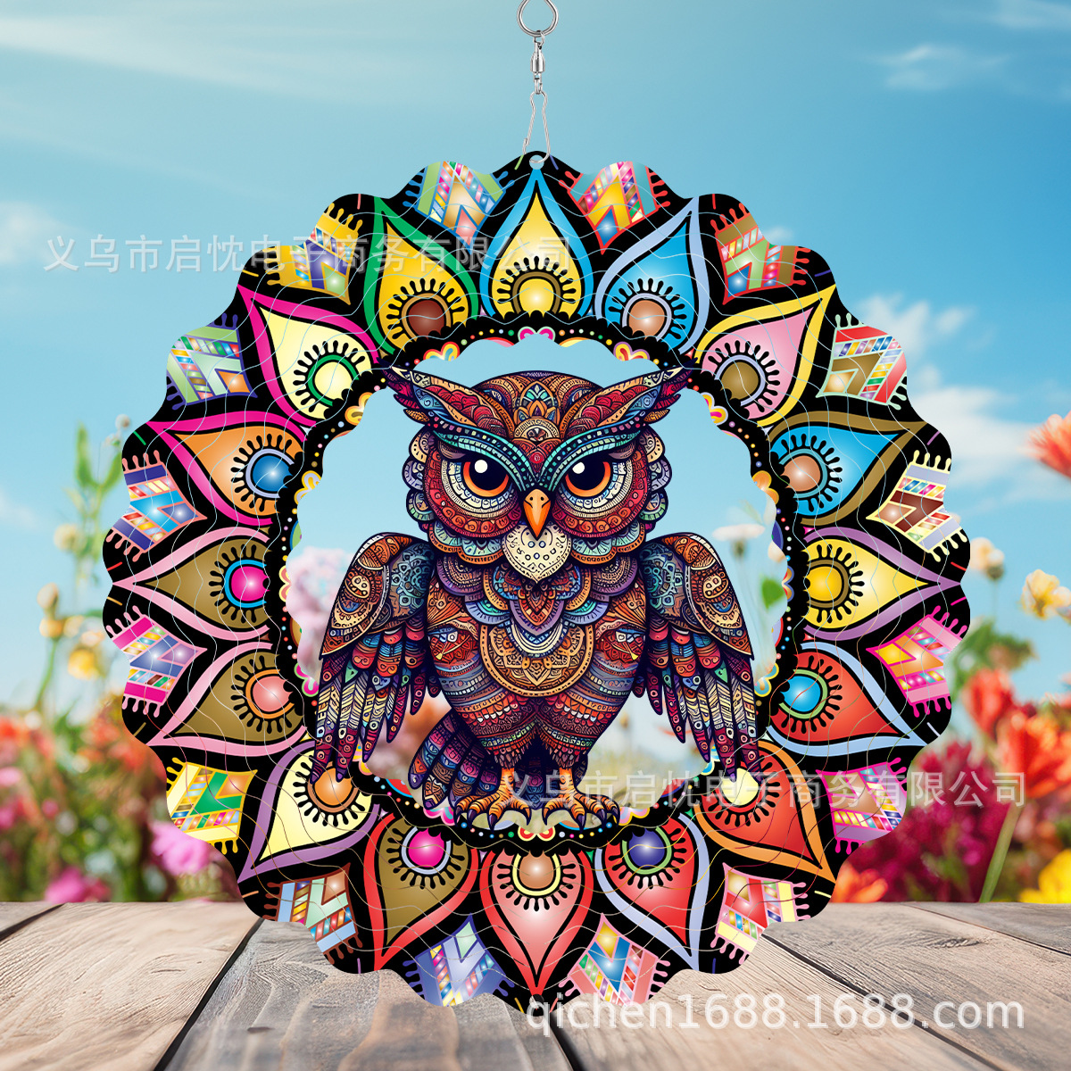 クロスボーダー起爆金属フクロウ風旋器3D動的回転風鈴装飾金属風車ストラップ