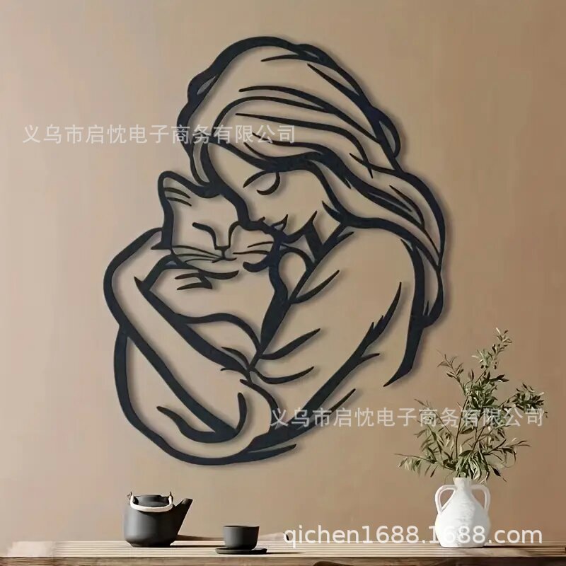 Temu新型鉄芸現代女性と猫線装飾品客間寝室壁面装飾画壁シンプル