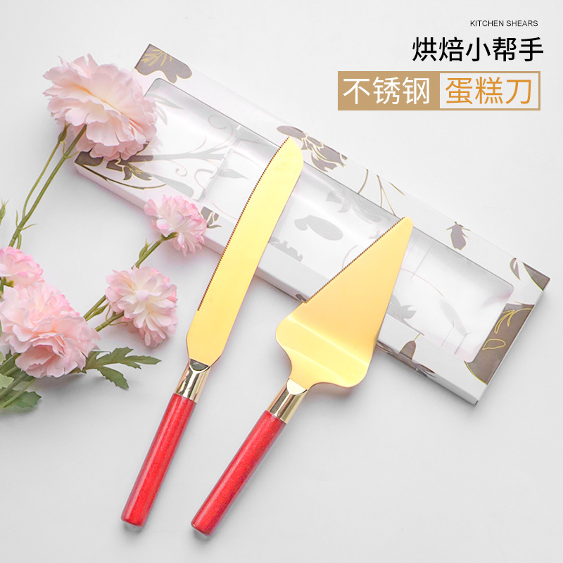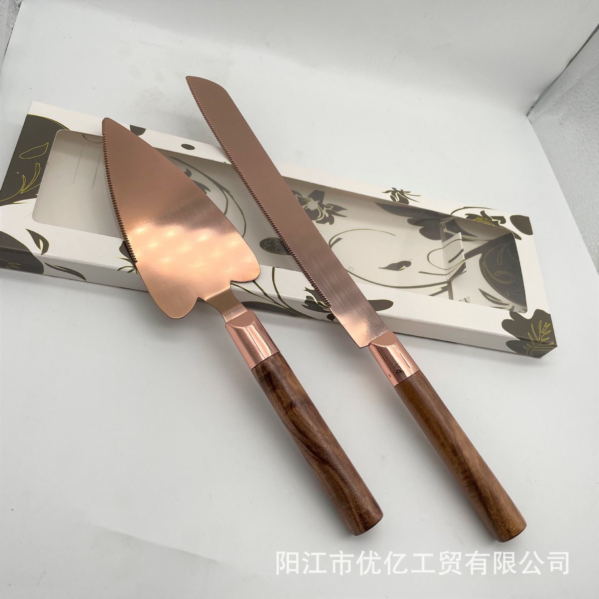 陽江メーカー木柄金色のこぎりケーキナイフパンナイフピザナイフシャベル焙煎工具結婚式セット