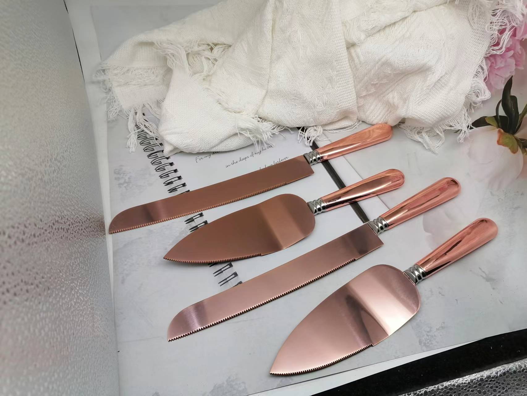 クロスボーダーのバラの金の結婚式のケーキのシャベルのセットの結婚祝いの装飾のツールのセットのクリームのナイフのピザのシャベルの牛