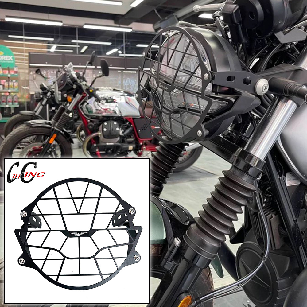 オートバイステンレスヘッドライト保護カバー使用バイクグズMoto Guzzi V7 stone V9