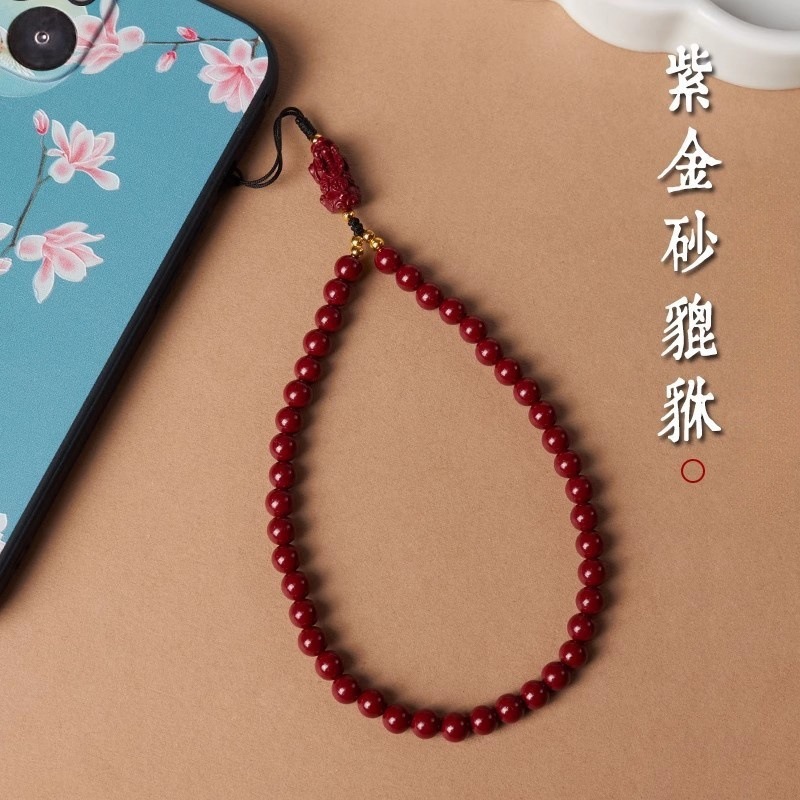 辰砂貔貅ビーズチェーンリスト携帯電話チェーンペンダント文学絶妙な中国風リングレトロストラップキーホルダー