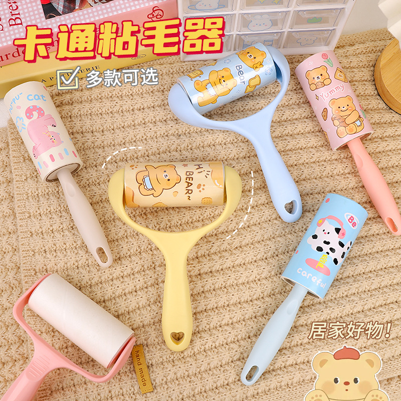 かわいい漫画柄の毛取り器セット、粘着式毛取りブラシ、衣類やペットの毛取り、粘着ローラー、家庭用毛取り器、交換用