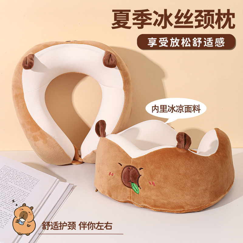 Yaya Kapi 低反発 U 字型枕アイスシルク生地夏の首枕学生車の低反発昼寝枕