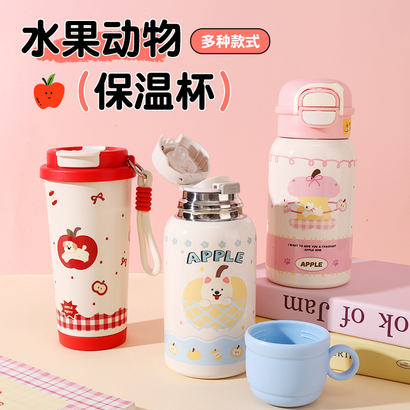 フルーツと動物シリーズの断熱カップ、見栄えの良い316ステンレス鋼のウォーターカップ、コーヒーカップ、ダブルドリンク子供用ストローカップ