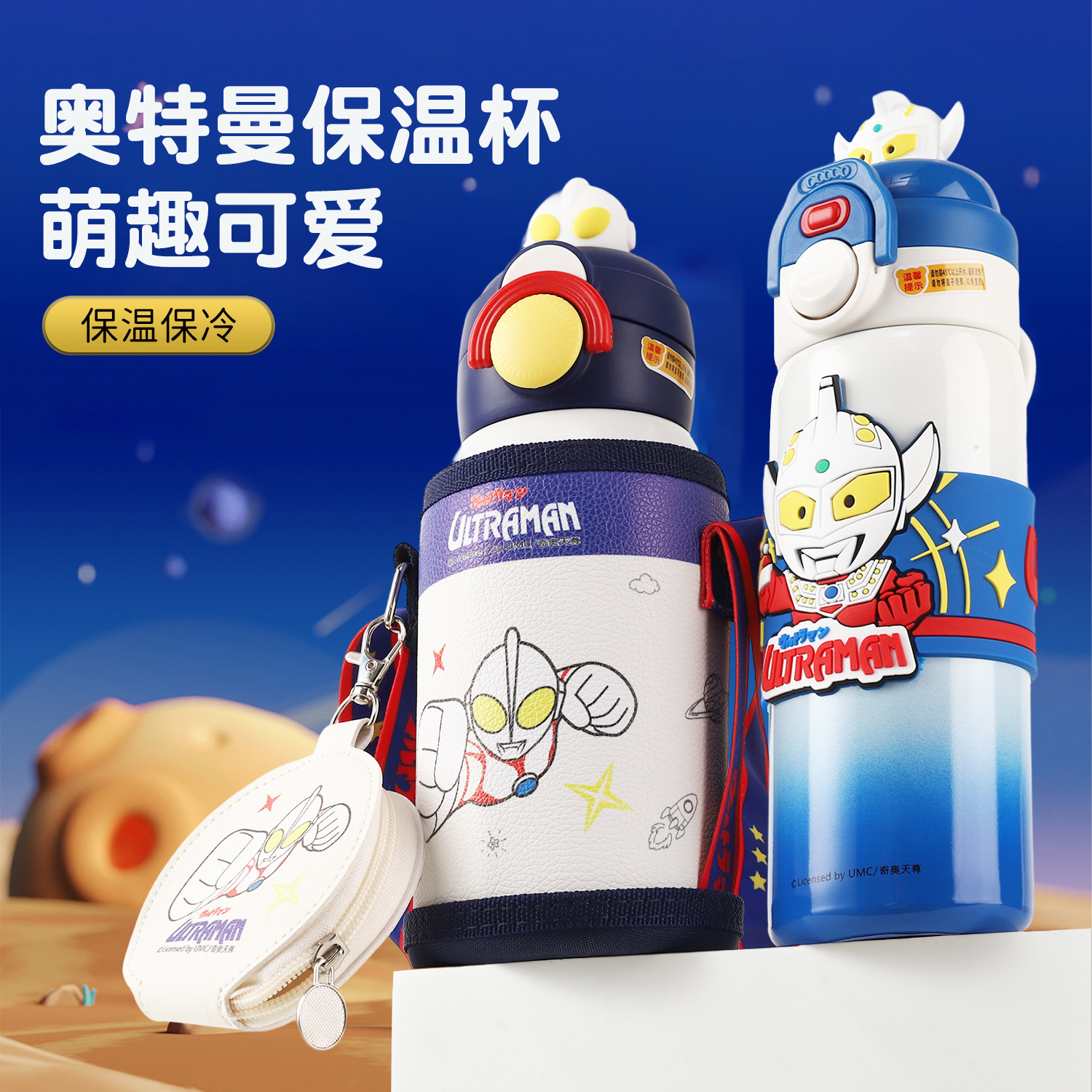 ウルトラマン 正規認定 ダブルドリンク 316 断熱カップ かわいい漫画 小学生 幼稚園 男の子 バウンスストローカップ