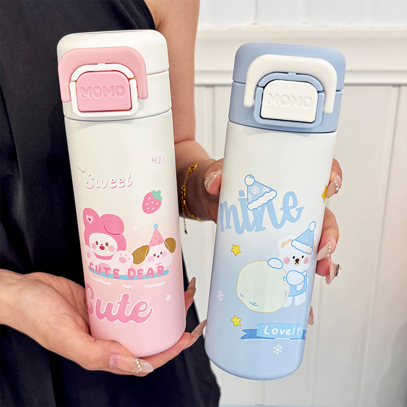 新しい漫画のスナップオン蓋付きストレートドリンク魔法瓶カップ 304 ステンレス鋼の学生女子学校かわいい高価値ポータブルカップ