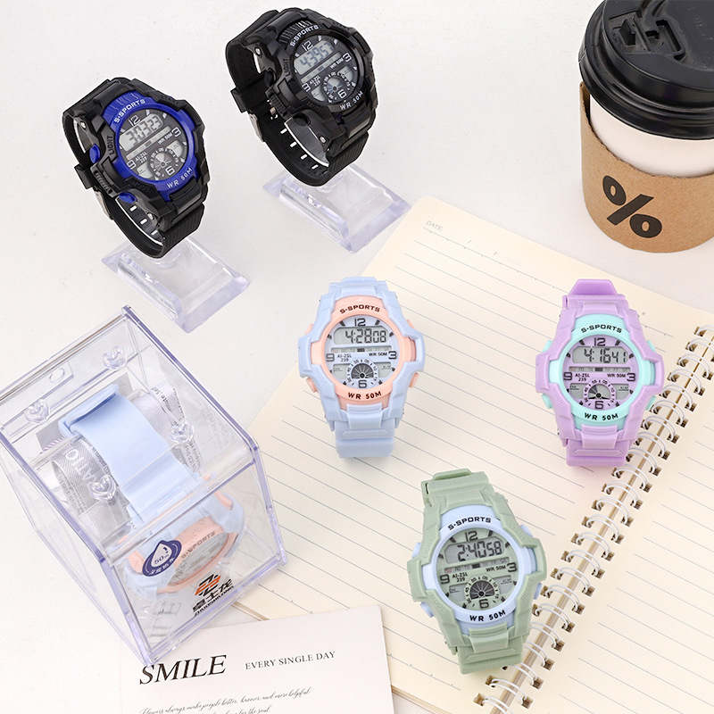 学生文创手表夏季装饰手表盒装撞色电子表带夜光防水手表学生女
