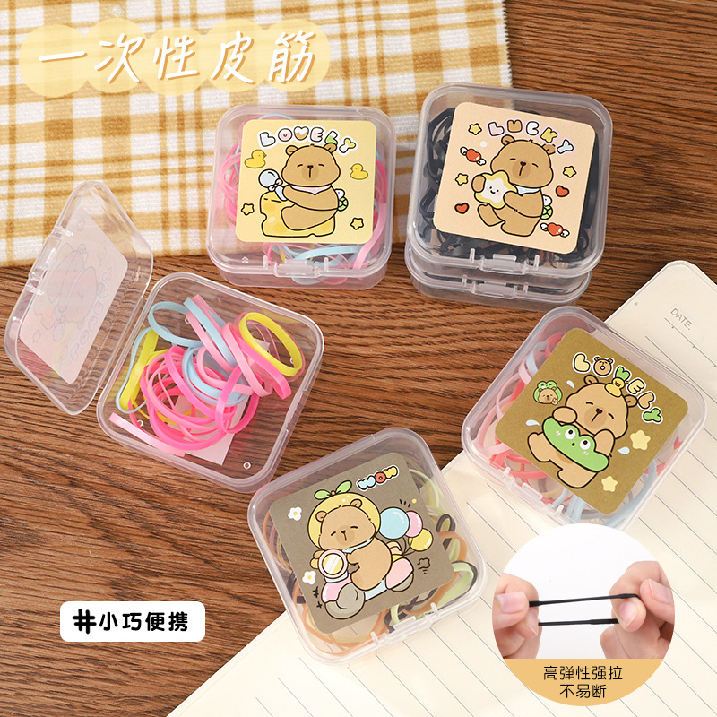 新しいカピバラかわいいキャンディーカラーのヘアゴムバンド箱入りゴムバンドベビーヘッドバンド使い捨てゴムバンド