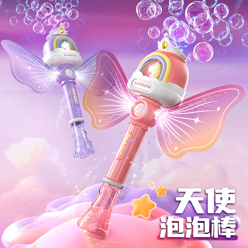 ネットの赤いタイプの天使の魔法の棒の子供のバブルマシンは発光して全自動のバブルマシンのおもちゃを持ってバブルスティックを吹きます。