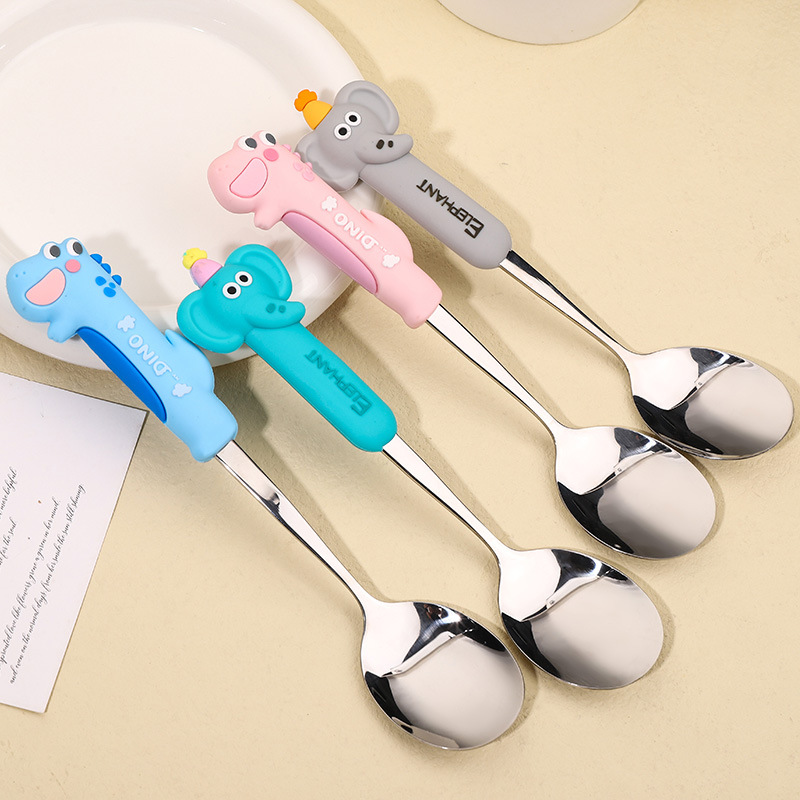 新しい漫画のシリカゲルの子供のスプーンの学生の携帯の食器の304ステンレスのスプーンのスープのスプーンのかわいい小さいスプーン