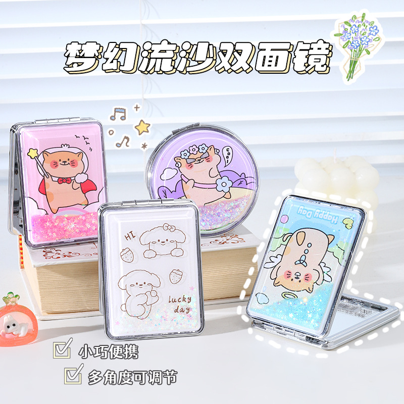 キャンバスの赤いinsの風の漫画の流砂の両面の鏡の高い顔の値は化粧の鏡を携帯して化粧を直します。