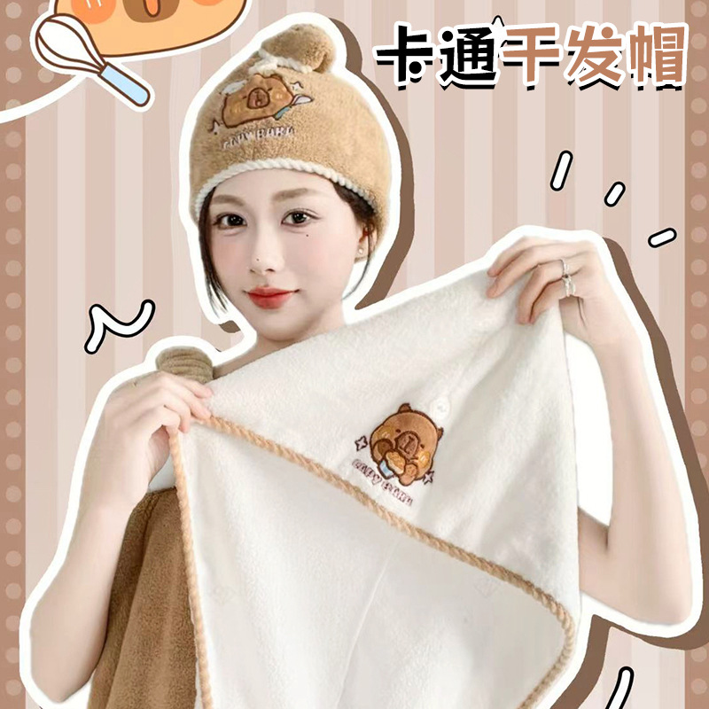 髪の帽子の大きい鼻の犬の漫画のかわいい集水繊維の吸水の速乾のシャワーの帽子の柔らかい髪を拭いて頭を洗ってスカーフを包みます。