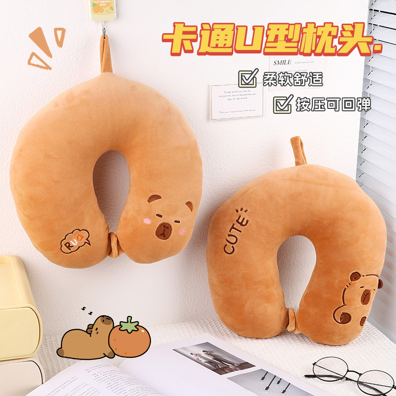 カピバラu型枕アウトドア旅行首保護枕出張用枕学生昼寝携帯PP綿入り枕