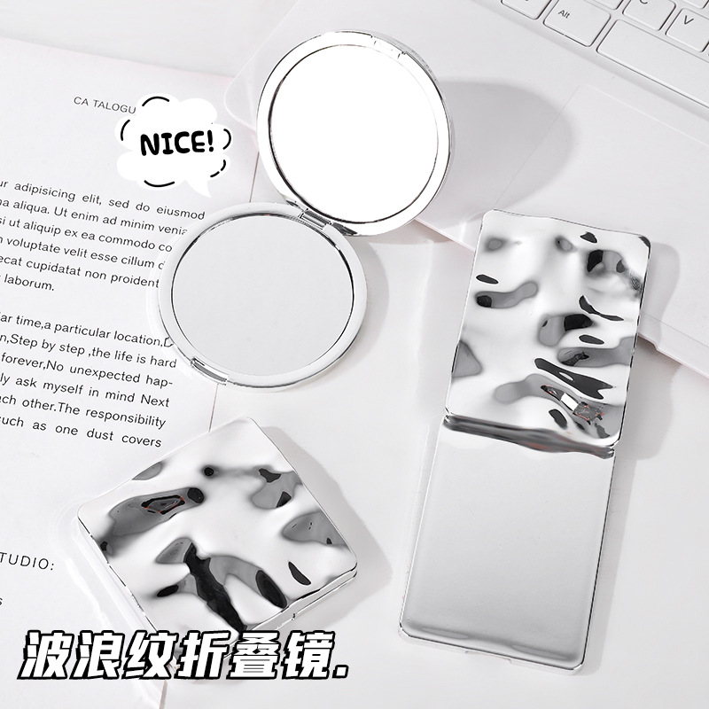 波模様の小さなミラー、ハイエンドのレトロなスタイルのポータブルミラー、折りたたみ式両面ミラー、ミニハンドヘルド化粧鏡、クロスボーダー