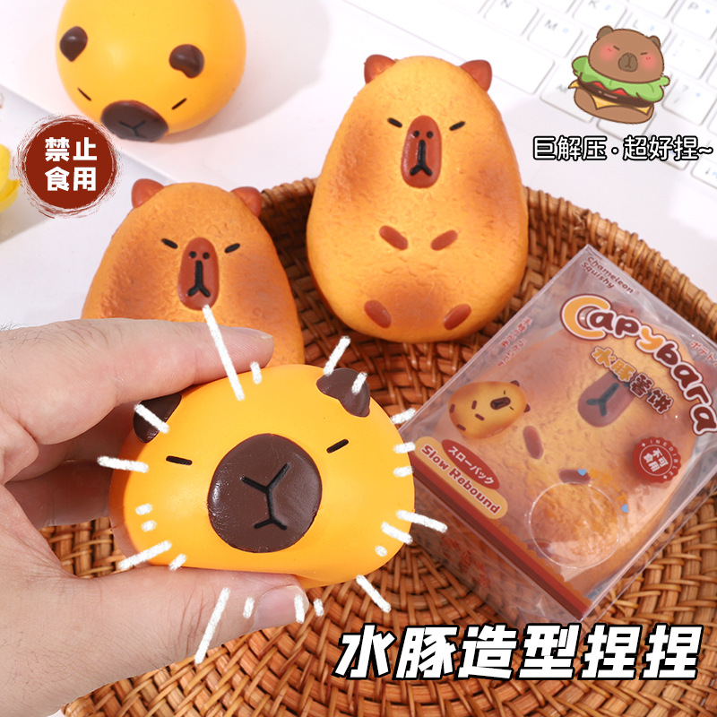 カピバラのポテトチップスをつまんで、おもちゃのポリウレタンを解凍します。