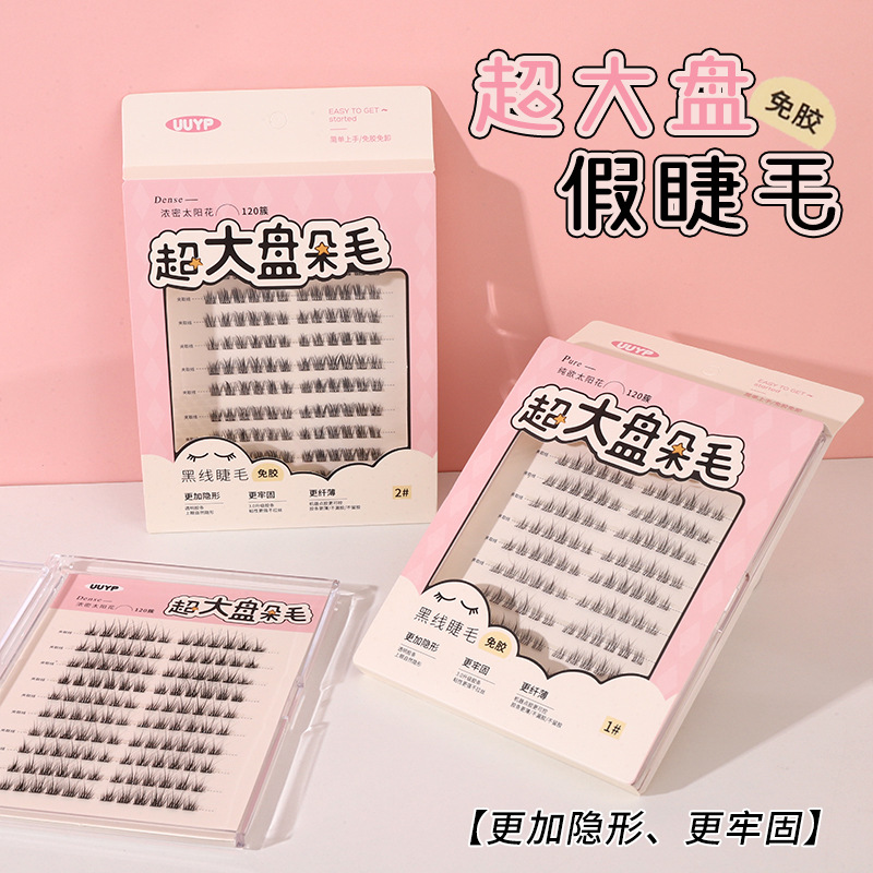 女性用の超大型レイジーひまわり純粋な欲望つけまつげ、自然なフォトジェニックなコミックまつげ、目に見えないシミュレーション、接着剤不使用の花の毛