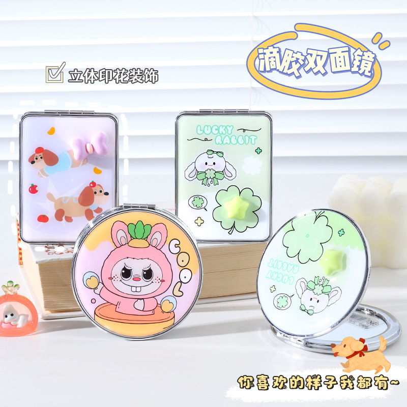 キャンバスの赤い新型のゴムの立体の両面の鏡のかわいい携帯の化粧の鏡の小さい円の鏡の女子学生の化粧の鏡の折り畳みの鏡