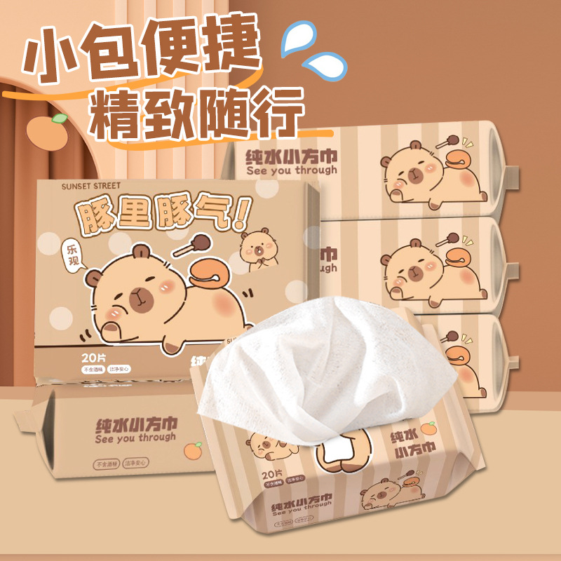Kapibala ベーキングシリーズ 純水 小さな正方形タオル 20 枚 女性用 アウトドア ポータブル 小型バッグ ウェットティッシュ クリーニングワイプ