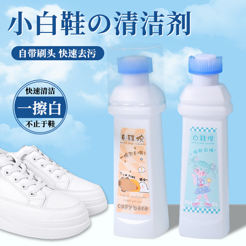 漫画の白い靴は白い靴の洗浄剤を拭いて靴を拭きます。