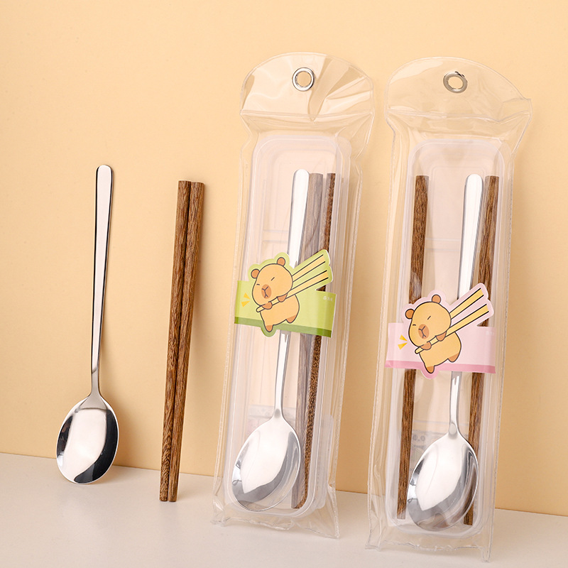 新しいカピバラ食器セットかわいいイルカステンレス鋼スプーンと箸 2 点セットポータブル衛生食器