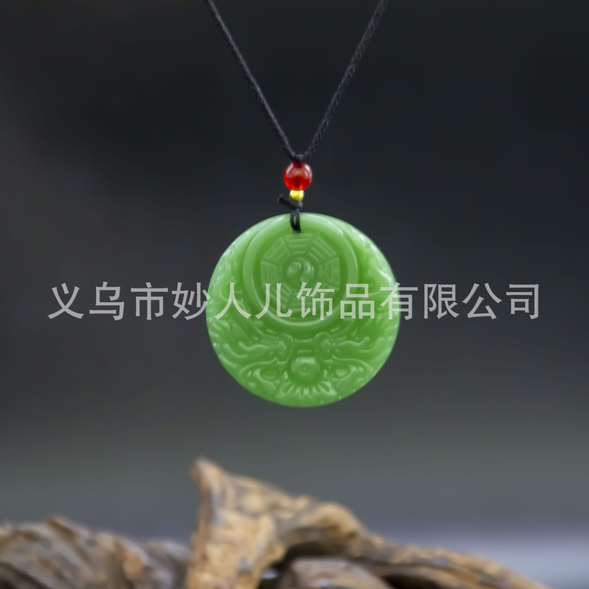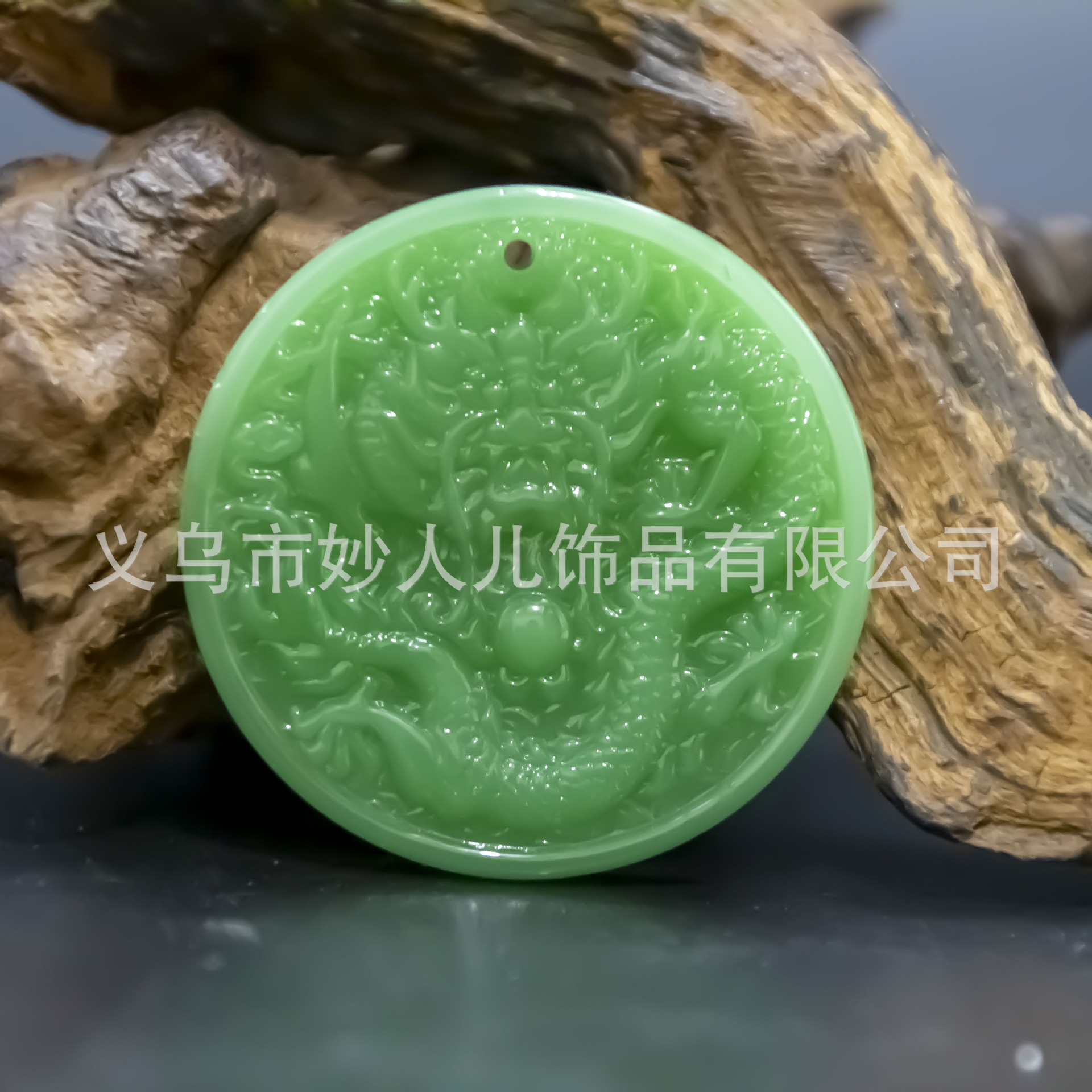 碧玉両面招財双龍ゴシップメーカー卸売り円珠ペンダント外蒙原料深緑色両面男女